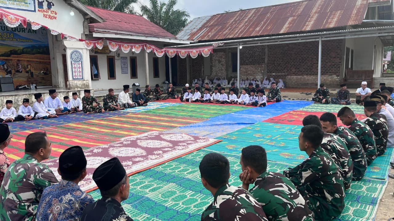 Banyuasin, 6 Maret 2026 – Hubungan akrab antara anggota Satgas TMMD ke-127 Kodim 0430/Banyuasin dengan masyarakat Desa Wonosari, Kecamatan Pulau Rimau, Kabupaten Banyuasin semakin terasa, khususnya pada bulan Ramadan. Hal ini terlihat saat mereka mengadakan buka puasa bersama dengan para siswa dan pengajar dari TK-TPA Hidayatul Qur’an.