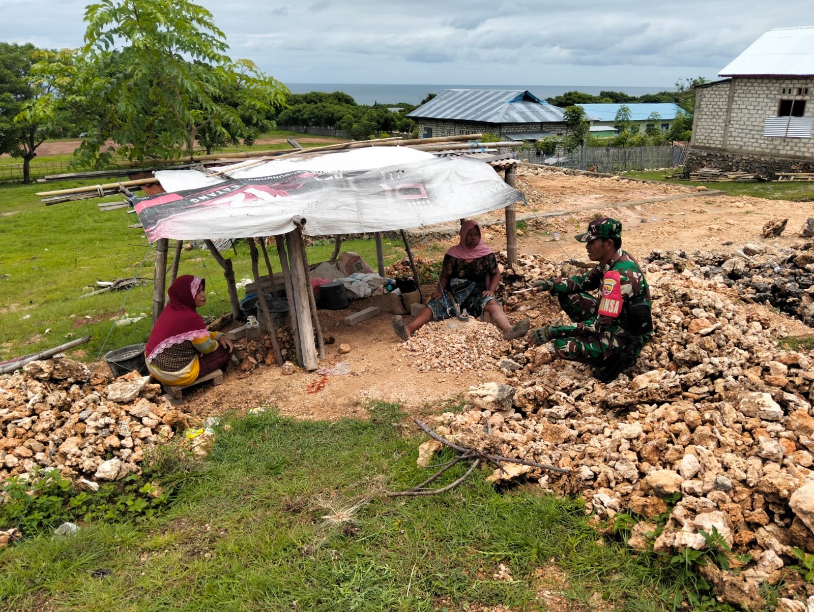 SUMBA TENGAH – Kegiatan komunikasi sosial (Komsos) menjadi sarana penting bagi Babinsa Koramil 03/Katikutana, Sertu Ilham Lahiya, untuk menjalin kedekatan dengan masyarakat di Desa Wendewa Barat, Kecamatan Mamboro. Pada hari Minggu, 18 Januari 2026, Sertu Ilham terlihat berinteraksi dengan warga yang sedang bekerja keras mengolah batu pecah.