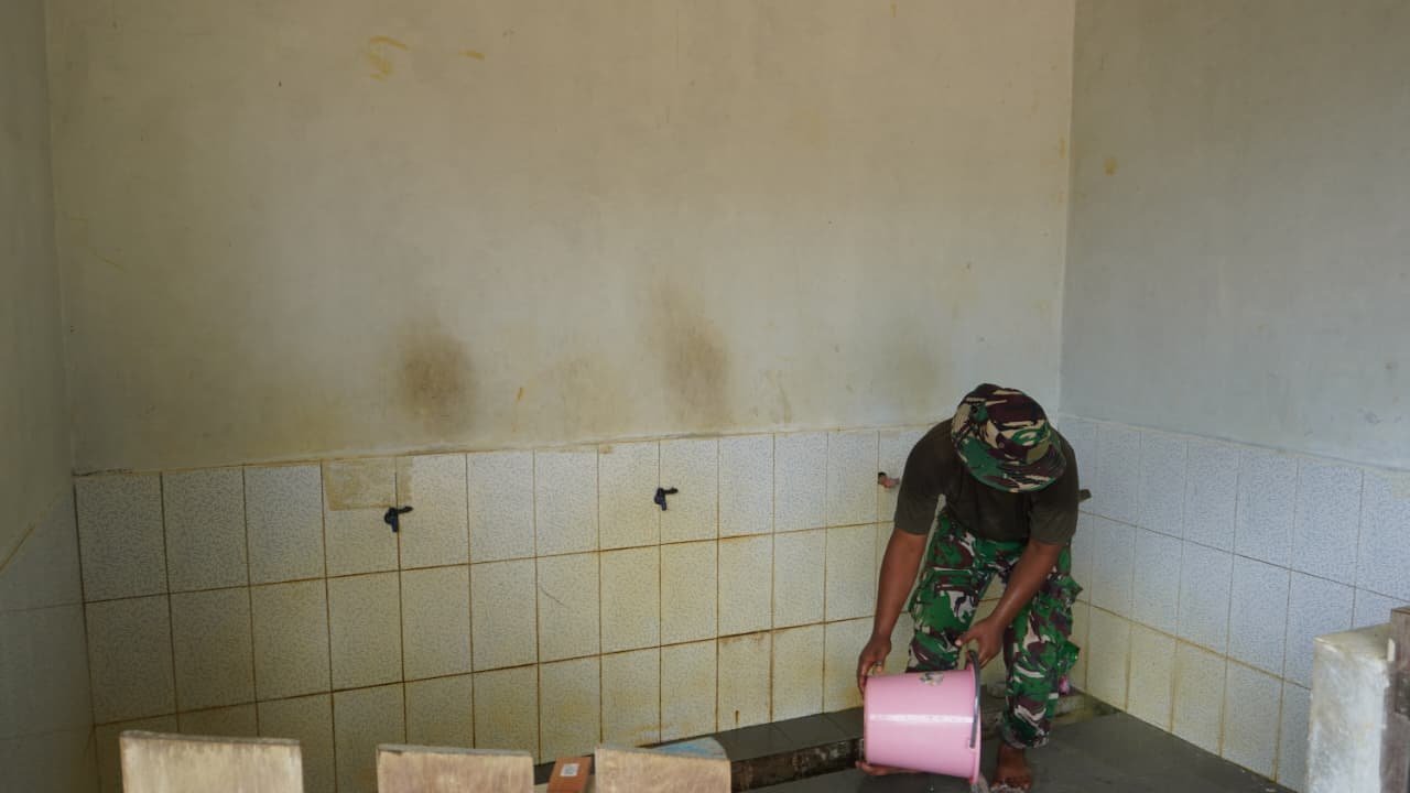 Dengan membawa peralatan kebersihan, para prajurit dan warga setempat dengan antusias membersihkan lantai, halaman, serta ruang dalam masjid agar siap digunakan untuk ibadah berjamaah. Suasana semangat gotong royong sangat terasa sepanjang berlangsungnya kegiatan ini.