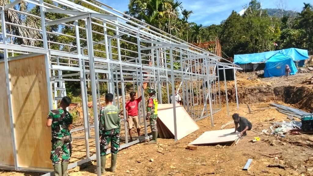 Kepedulian Teritorial Korem 012/TU, TNI Hadir Dampingi Pembangunan Huntara