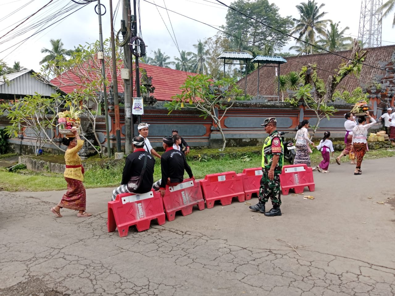 Kepedulian TNI Terhadap Agama: Babinsa Peninjoan Amankan Upacara Dewa Yadnya