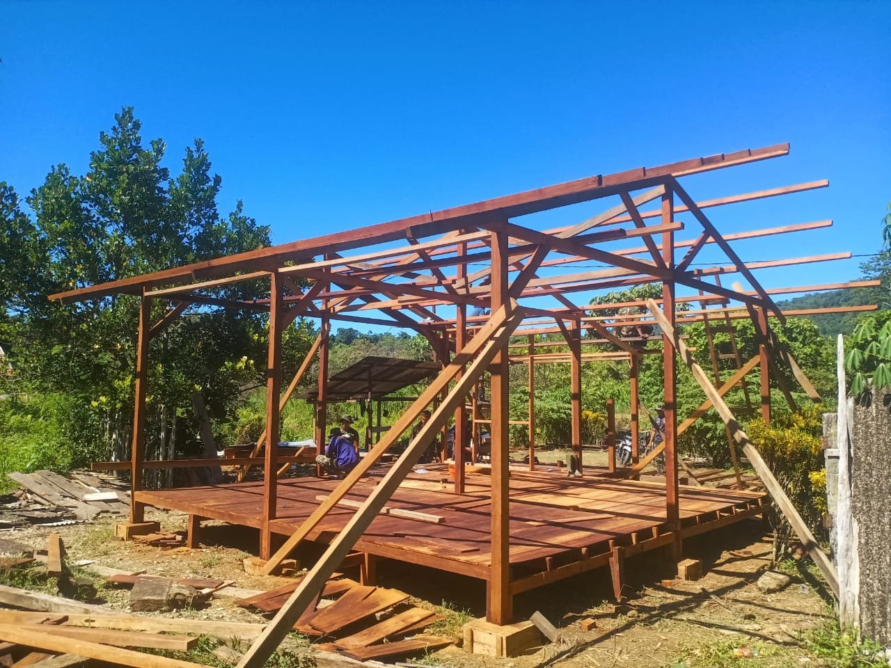 Kerangka Kayu RTLH Berdiri Tegak, Pekerjaan Pembangunan Semakin Terlihat