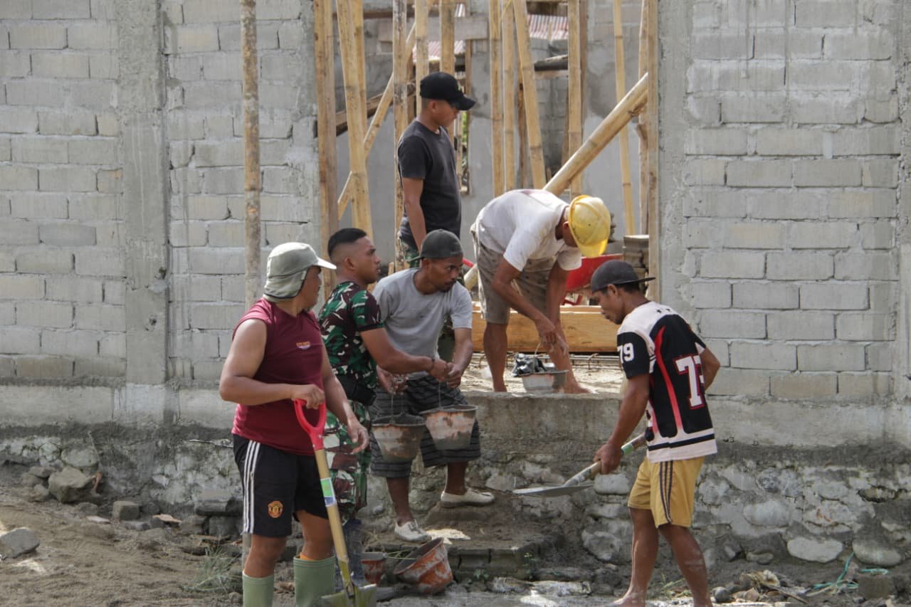 Kerja Sama TNI dan Masyarakat Pembangunan Masjid di Desa Oyom