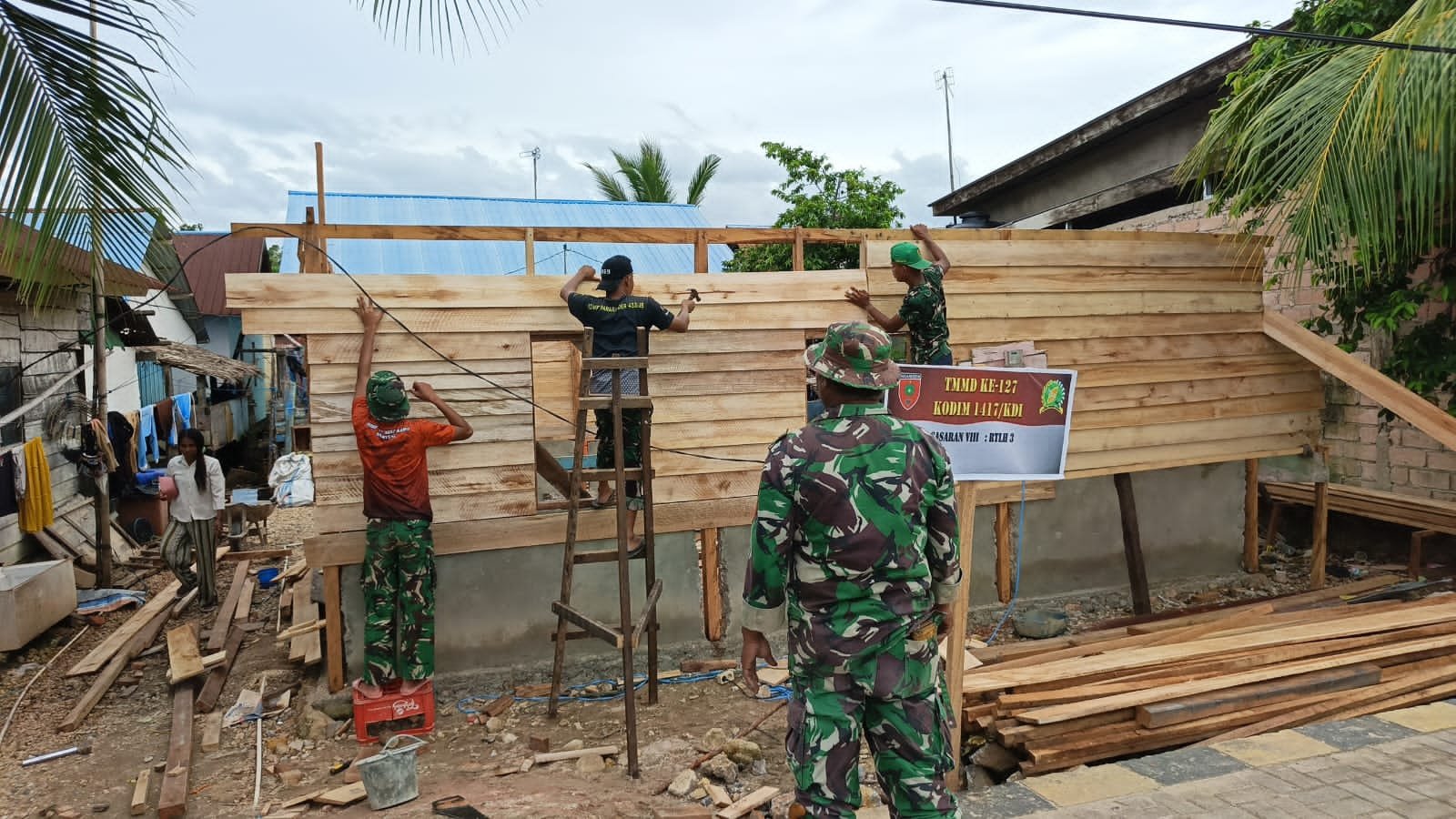 Kerjasama TNI dan Warga Petoaha Percepat Proyek RTLH Unit 3