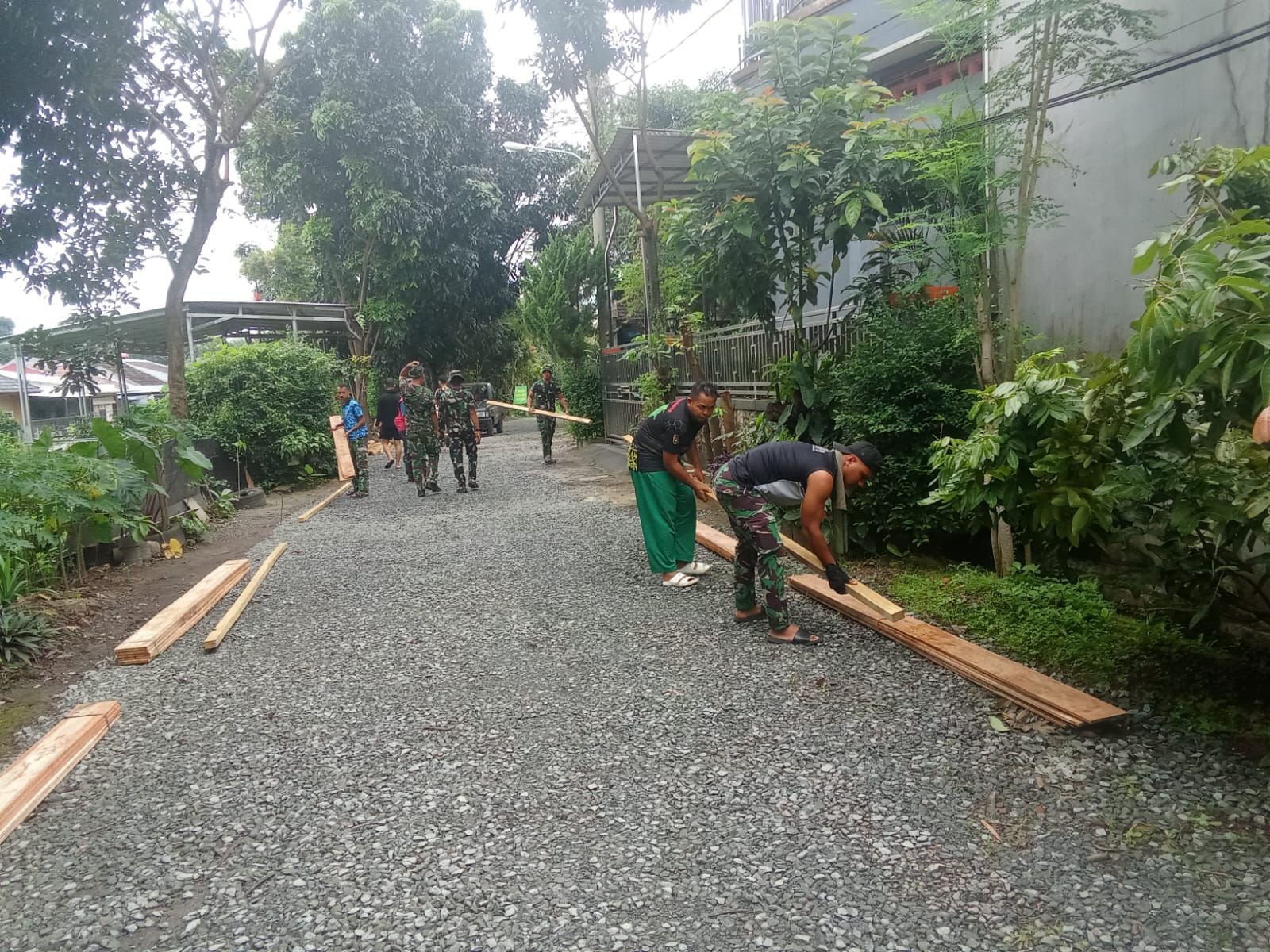 Kerjasama TNI-Polri dan Masyarakat Dalam Pengerasan Jalan di Sukmajaya