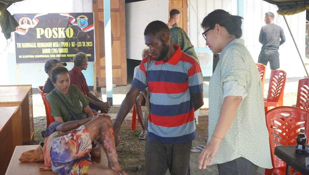 Nabire, 26 Juli 2025 — Wujud kepedulian terhadap masyarakat terus ditunjukkan dalam pelaksanaan TMMD ke-125 Tahun Anggaran 2025 oleh Kodim 1705/Nabire, tak hanya melalui pembangunan fisik, namun juga melalui sentuhan kemanusiaan. Salah satunya ditunjukkan oleh Ketua Persit Kartika Chandra Kirana Cabang XX Kodim 1705/Nabire, Ny. Uly Simbolon, yang mempelopori kegiatan pengobatan gratis bagi warga Kampung Manunggal Jaya, Distrik Makimi, Kabupaten Nabire, Provinsi Papua Tengah.