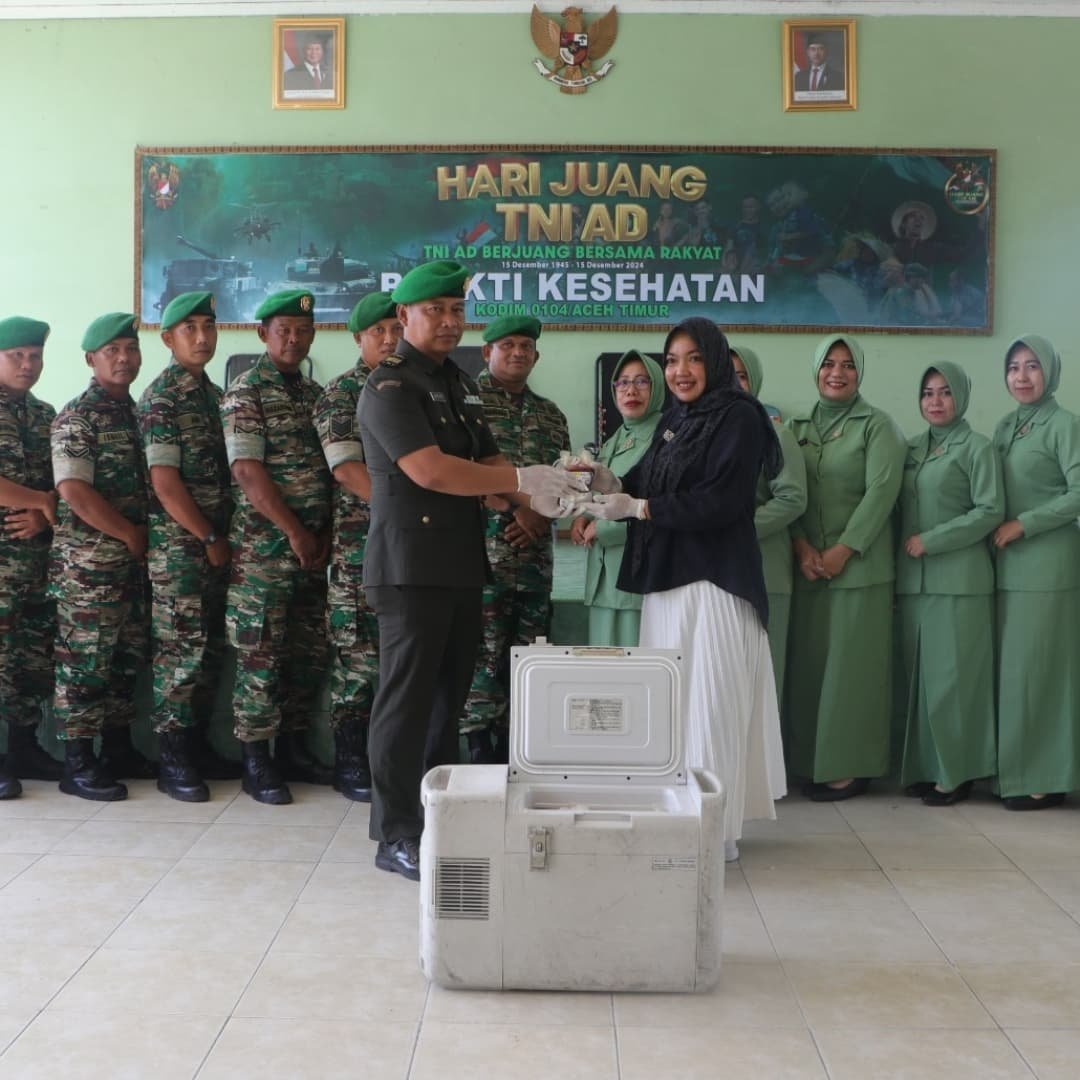 Dalam rangka memperingati Hari Juang TNI Angkatan Darat (AD) ke-79, Kodim 0104/Aceh Timur menggelar kegiatan donor darah yang dipimpin langsung oleh Dandim 0104/Atim, Letkol Inf Tri Purwanto, S.I.P., bersama Ketua Persit KCK Cabang XXI Dim 0104, Ny. Yuni Tri Purwanto. Kegiatan ini menjadi bentuk nyata kepedulian TNI terhadap kebutuhan darah yang kerap kali menjadi masalah kritis bagi masyarakat.
