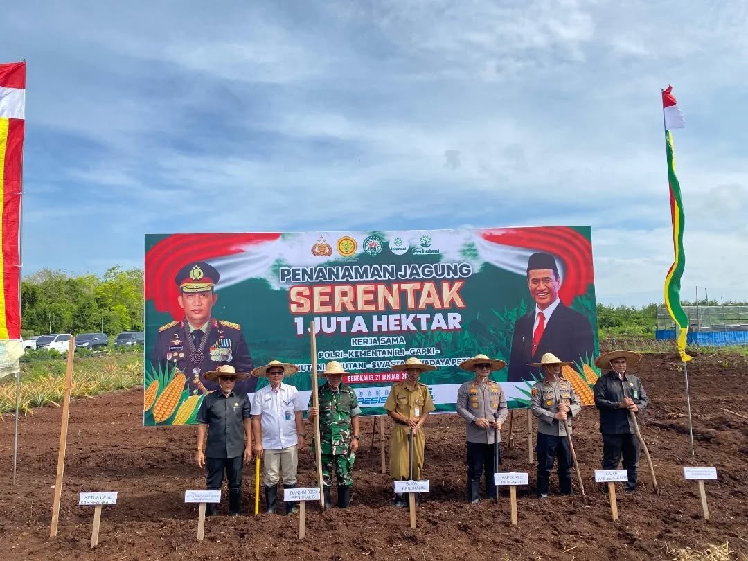 Kodim 0303/Bengkalis Hadiri Penanaman Serentak Ketahanan Pangan Polri di Desa Sungai Alam