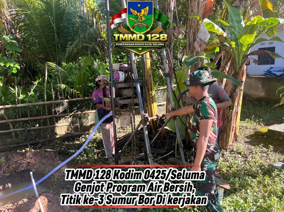 Seluma – Program TNI Manunggal Membangun Desa (TMMD) ke-128 yang diadakan oleh Kodim 0425/Seluma menunjukkan kemajuan yang signifikan. Salah satu sasaran utama dari kegiatan ini adalah untuk menyediakan air bersih bagi masyarakat, yang sekarang telah memasuki tahap pengerjaan sumur bor ketiga di Desa Lubuk Lagan, Kecamatan Talo Kecil, Kabupaten Seluma, pada Minggu (26/04/2026).