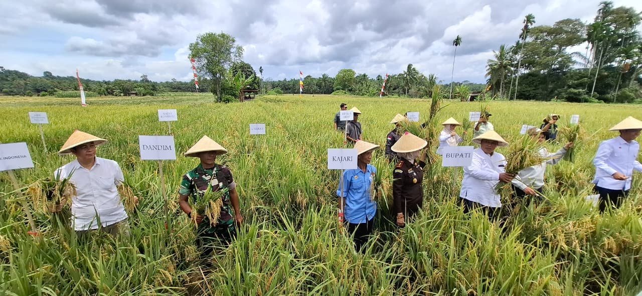 Kodim 0428/MukoMuko, Bersama Anggota DPR RI dan Forkopimda MukoMuko, Laksanakan Panen Padi Bersama di Desa Lubuk Pinang Kab. MukoMuko