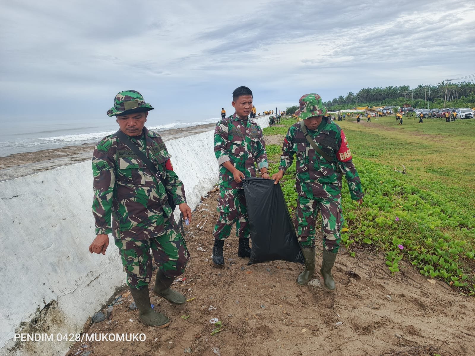 Kodim 0428/Mukomuko Gelar Pembersihan Pantai Abrasi MukoMuko