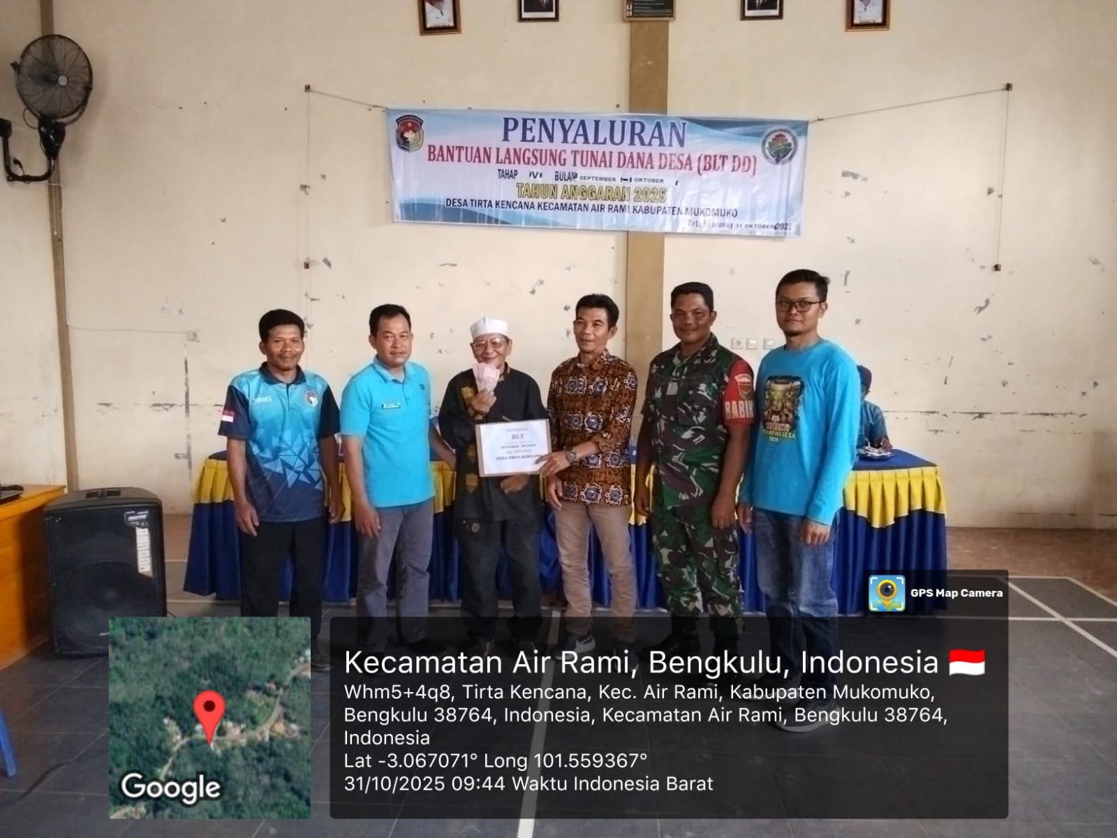 Mukomuko – Menghadiri undangan penyaluran pembagian Bantuan Langsung Tunai (BLT-DD) periode bulan September 2025, Desa Cinta Asih, Kecamatan Air Rami, Kabupaten Mukomuko, Jum’at (31/10/2025).