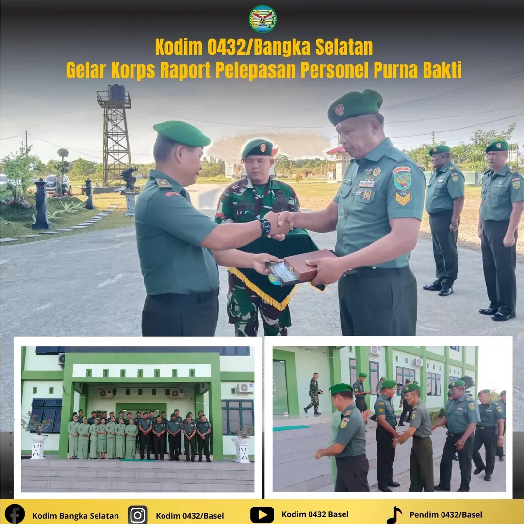 BANGKA SELATAN – Pada Selasa, 3 Februari 2026, Kodim 0432/Bangka Selatan menggelar acara Korps Raport Pelepasan Personel Purna Bakti di Makodim 0432, berlokasi di Jalan Raya Gadung Koba, Desa Bikang, Kecamatan Toboali, Kabupaten Bangka Selatan. Acara ini ditujukan untuk menghormati Serka Agus Susanto yang telah menyelesaikan masa dinasnya.