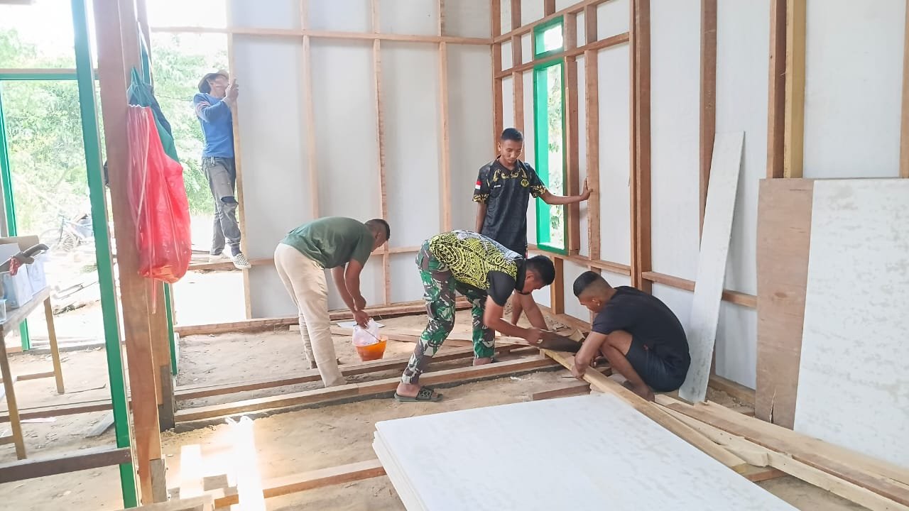 Pada Kamis (07/08), pengerjaan fisik berupa pemasangan dinding klasiboard dan skat ruang dalam rumah Rahman terus digarap. Progres pembangunan menunjukkan semangat gotong royong yang tinggi antara anggota Satgas dan masyarakat setempat, mencerminkan kekompakan dalam mewujudkan impian warga akan tempat tinggal yang aman dan nyaman.