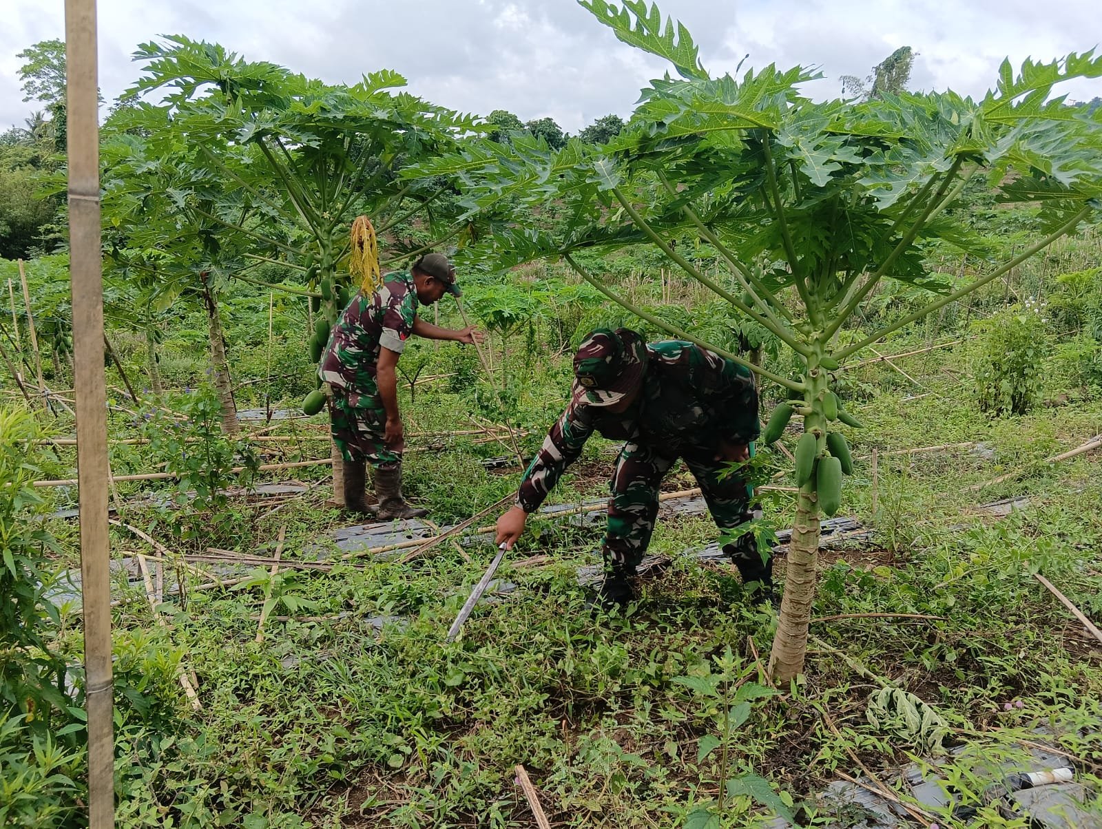 Dalam kegiatan tersebut, dilakukan penanaman Kacang Panjang, pembersihan Kebun Pisang Calvendis, perawatan Tanaman Pepaya California, serta penanaman Cabai dan pemberian pakan untuk Ayam. Menurut Danramil Kapten Inf Stenli Andaria, perawatan rutin ini penting untuk menjaga kesehatan tanaman agar tumbuh maksimal dan mendukung ketersediaan pangan bagi masyarakat.