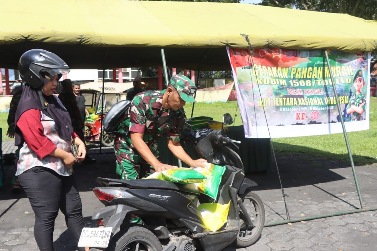 Kodim 1508/Tobelo dan Dinas Ketahanan Pangan Halut Gelar Pangan Murah di HUT ke-80 TNI