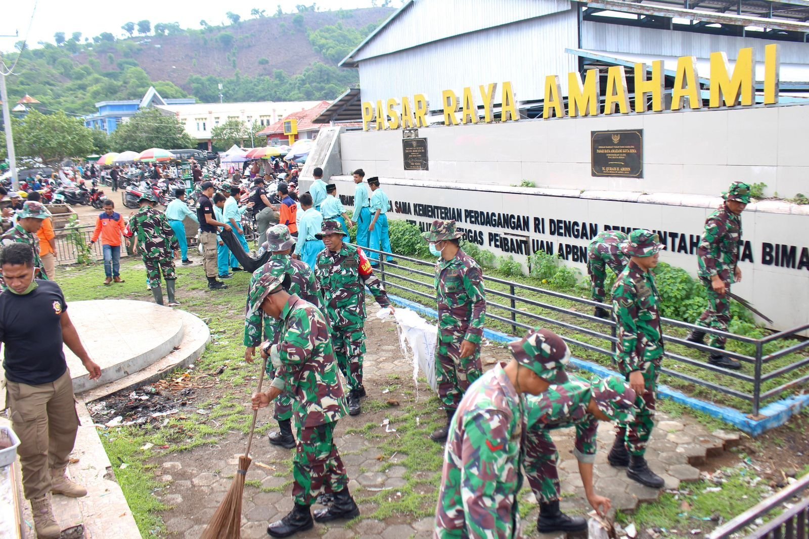Kegiatan ini melibatkan 150 personel dari berbagai elemen masyarakat, termasuk 4 peleton personel TNI AD, anggota Polri (Polres Kota Bima dan Polres Bima), Satpol PP Kota dan Kabupaten Bima, petugas BNPB, pegawai pasar, dan siswa MTsN Padolo. Turut hadir sejumlah pejabat penting, seperti Danramil 1608-01/Rasanae Kapten Inf. Seninot Sribakti, Danramil 1608-03/Sape Lettu Inf. Ruslin, Pasiterdim 1608/Bima Lettu Inf. M. Hidayat, S.Sos., Kasat Pol PP Kota Bima Erwin Rahadi, S.Sos., dan Kepala Pasar Raya Amahami Arif Rahman, S.E.