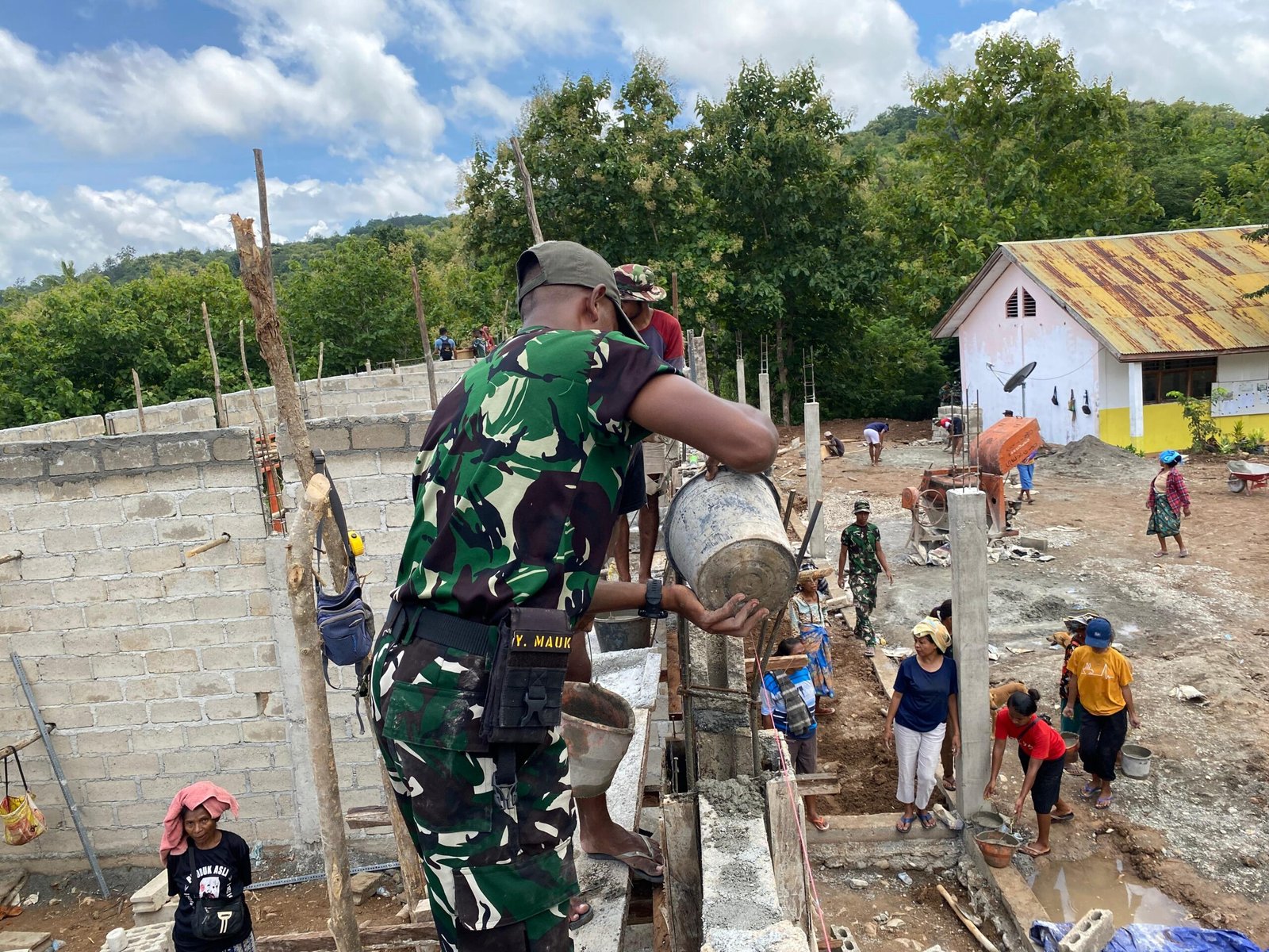 Kolaborasi Prajurit dan Masyarakat, Tiang Tembok RKB di Sunkaen Mulai Terbangun