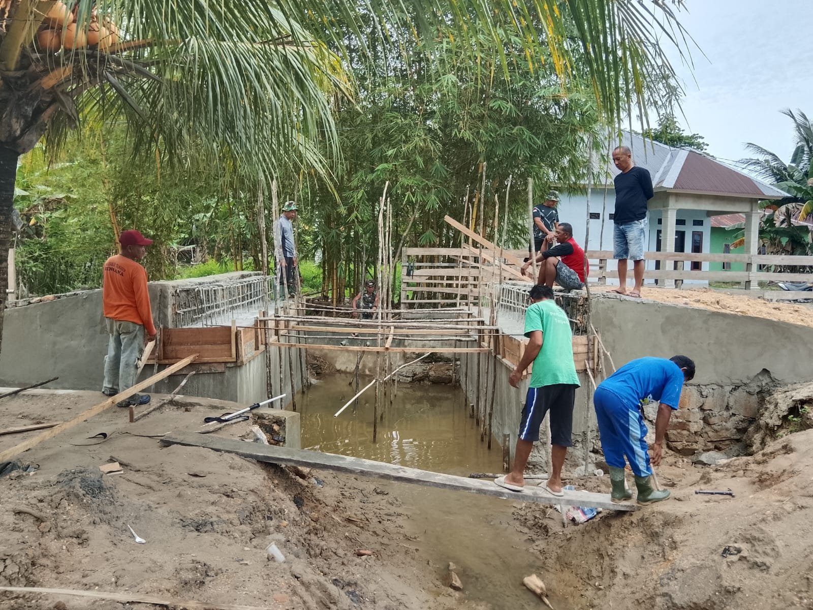 Kolaborasi Satgas TMMD 127 dan Warga Siapkan Pengecoran Jembatan di Sambuli