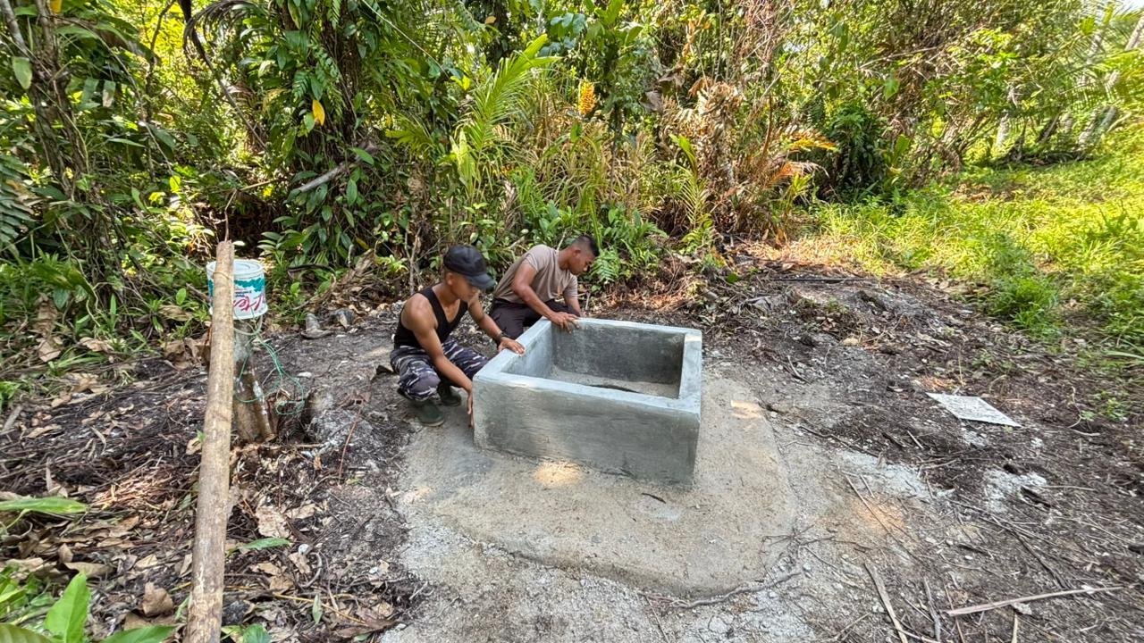 Tujuan dari kegiatan ini adalah untuk meratakan dan menghaluskan permukaan dinding sumur agar hasil konstruksinya lebih optimal dan tahan lama. Lokasi sumur tersebut berada di depan rumah Ibu Evelina Surawi, yang merupakan penerima manfaat dari program ini.