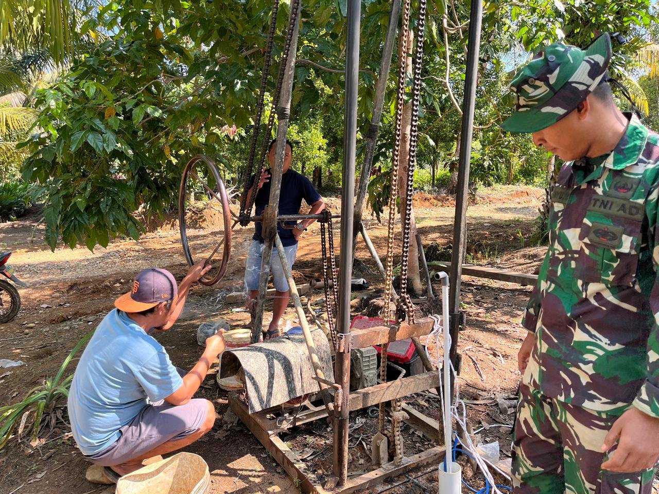 Seluma, 24 April 2026 — Program TNI Manunggal Membangun Desa (TMMD) ke-128 yang diinisiasi oleh Kodim 0425/Seluma terus berupaya meningkatkan taraf hidup masyarakat sekitar. Saat ini, mereka sedang melaksanakan proyek pembangunan sumur bor yang dilakukan bersama dengan mahasiswa KKN 107 dari Universitas Bengkulu (UNIB).