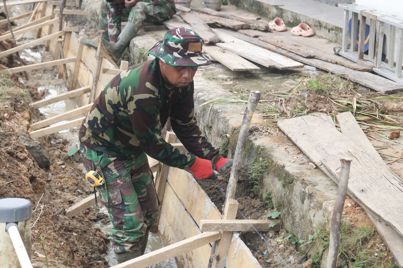 Kendari – Kebersamaan antara Satgas TMMD ke-127 Kodim 1417/Kendari dan masyarakat tampak jelas dalam proyek pembangunan drainase yang berlangsung di Kelurahan Anggoeya, Kecamatan Poasia pada Kamis, 12 Februari. Kegiatan ini bertujuan untuk membantu penduduk setempat dalam mengatasi masalah banjir yang sering melanda kawasan tersebut.