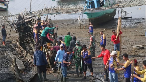 Kendari – Anggota Kodim 1417/Kendari berkolaborasi dengan Pemerintah Kota Kendari dalam pelaksanaan pembongkaran kapal nelayan KM Black Marlin 99, yang dilaksanakan di Jalan Ir. H. Alala, Kelurahan Tipulu, Kecamatan Kendari Barat, pada Kamis (5/2).