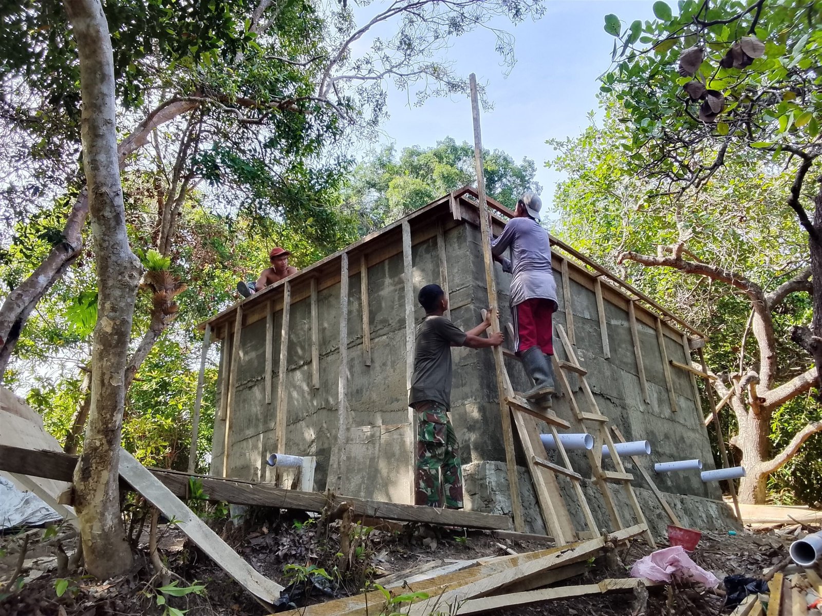 Kendari – Personel Satgas TMMD ke-127 dari Kodim 1417/Kendari terus mempercepat pengerjaan fasilitas penampungan air bersih di Kelurahan Sambuli, pada Sabtu (7/3). Meskipun menghadapi tantangan berat dalam medan kerja, para anggota Satgas menunjukkan komitmen tinggi dengan fokus pada kualitas pembangunan, sehingga bak penampungan air yang dibangun memiliki struktur yang kuat dan tahan lama.