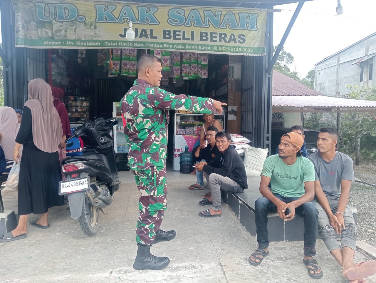 ACEH BARAT – Babinsa Posramil 12/Panton Reu Kodim 0105/Aceh Barat, Koptu Abdan, melaksanakan kegiatan Komunikasi Sosial (Komsos) bersama warga binaan di Gampong Meutulang, Kecamatan Panton Reu, Kabupaten Aceh Barat, pada Kamis seharusnya Rabu (31/7/2025).
