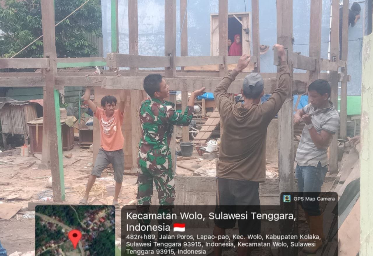 Kolaka – Pada Senin, 16 Februari 2026, Babinsa Desa Ulu Lapao-Pao, Koptu Suharman, mengadakan kegiatan karya bakti di Dusun 1 Ulu Lapaopao, Kecamatan Wolo, Kabupaten Kolaka. Aktivitas ini bertujuan untuk memperkuat kemanunggalan antara TNI dan masyarakat. Dalam acara tersebut, Koptu Suharman turut membantu proses pemasangan tiang rumah milik Bapak Haji Kobi. Kehadiran Babinsa dalam kegiatan ini menunjukkan kepedulian TNI terhadap masyarakat serta dukungannya dalam mengatasi berbagai kesulitan yang dihadapi di wilayah binaan. Koptu Suharman menekankan pentingnya kegiatan gotong royong sebagai sarana pelestarian nilai kebersamaan dan silaturahmi, serta mempererat hubungan antara TNI dan masyarakat. Masyarakat setempat juga memberikan apresiasi atas keaktifan Babinsa dalam membantu warga, yang menciptakan suasana kekompakan di desa. Kegiatan karya bakti ini diharapkan dapat menjaga semangat gotong royong dan memperkuat hubungan harmonis antara TNI dan masyarakat demi mendukung pembangunan di Kabupaten Kolaka.