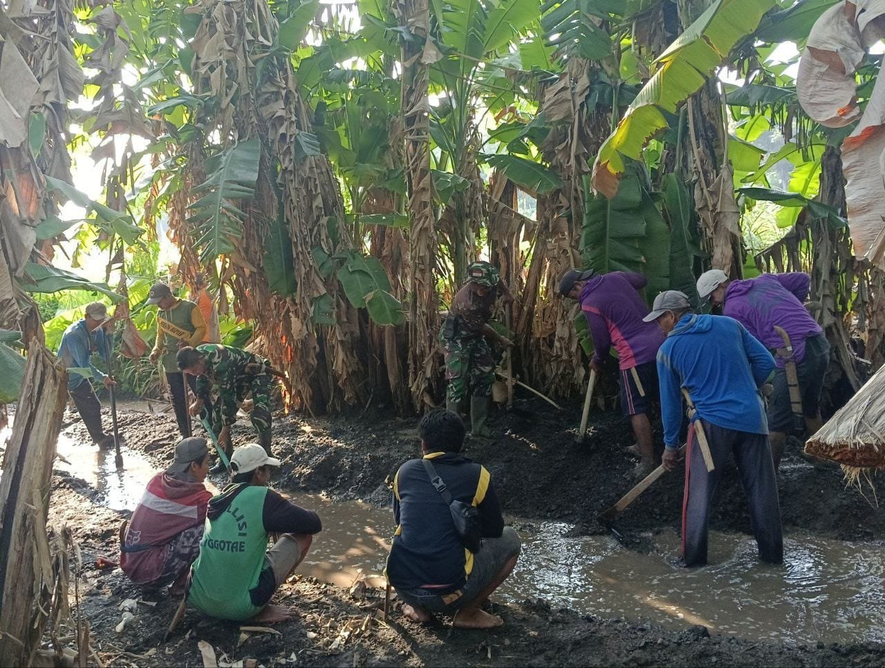 Koramil 02/Tellu Limpoe dan Warga Bersinergi dalam Karya Bakti Pembersihan Saluran Air di Sidrap