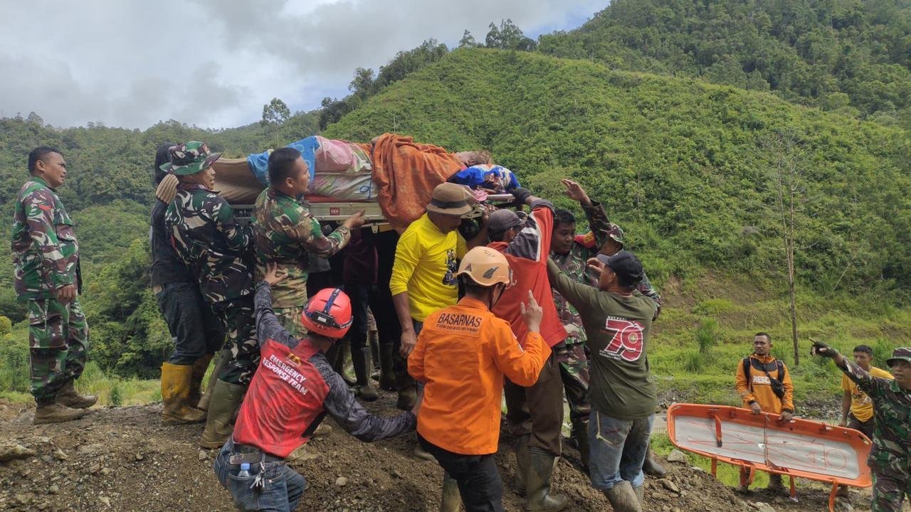 Koramil 1403-05/Bastem Evakuasi Korban Longsor di Latimojong