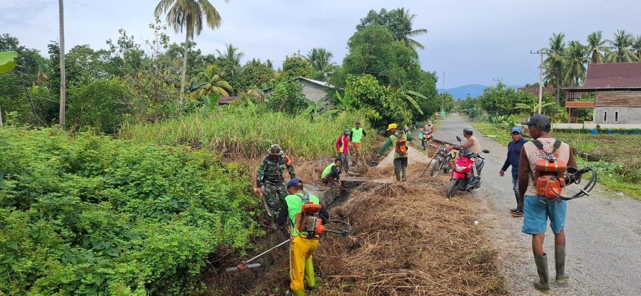 Koramil 1403-11/Masamba Bersama Warga Gelar Gotong Royong Bersihkan Jalan dan Drainase di Kapidi