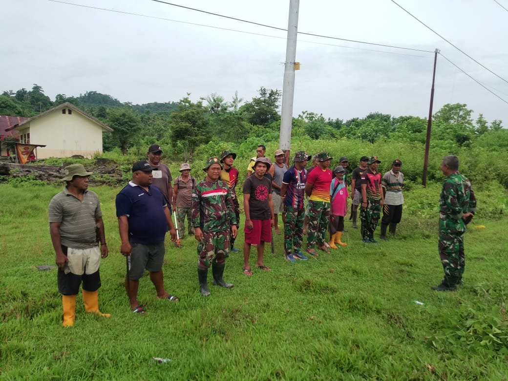 Koramil 1508-04/Malifut Bersama Warga Tafasoho Laksanakan Pembersihan Lahan Pembangunan PAUD