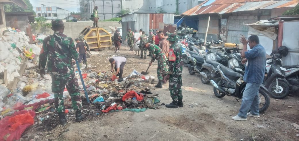 Pembersihan sampah ini melibatkan banyak pihak, termasuk warga sekitar yang antusias mengikuti kegiatan tersebut. Mereka bersama-sama membersihkan area pasar dari sampah yang menumpuk, memperbaiki saluran air, dan memastikan kebersihan lingkungan pasar agar tetap terjaga. Karya Bakti ini merupakan bentuk kepedulian dan kerjasama antara TNI, pemerintah kelurahan, serta masyarakat dalam menjaga kebersihan dan kesehatan lingkungan.
