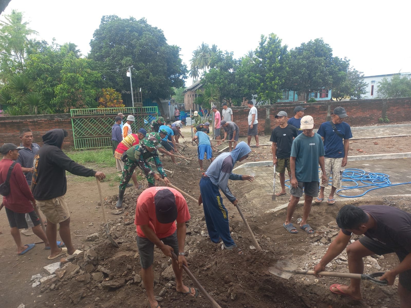 NTB – Sumbawa — Dalam rangka menyambut HUT ke-80 Tentara Nasional Indonesia (TNI), Koramil 1607-07/Lunyuk melaksanakan kegiatan Karya Bhakti TNI Prima berupa pemasangan paving blok dan pembuatan tangga Masjid Assyukur, Dusun Sukajaya, Desa Lunyuk Rea, Kecamatan Lunyuk, Jumat (12/09/2025) pagi.