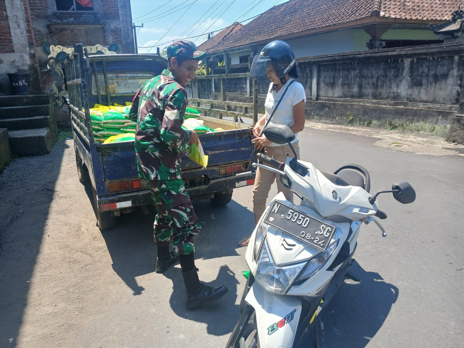 Bangli – Dalam rangka menjaga stabilitas harga pangan dan membantu masyarakat memenuhi kebutuhan pokok, Koramil 1626-01/Bangli bekerja sama dengan Perum Bulog menggelar kegiatan Gerakan Pangan Murah Beras SPHP di Lingkungan Tegal, Kelurahan Bebalang, Kabupaten Bangli.