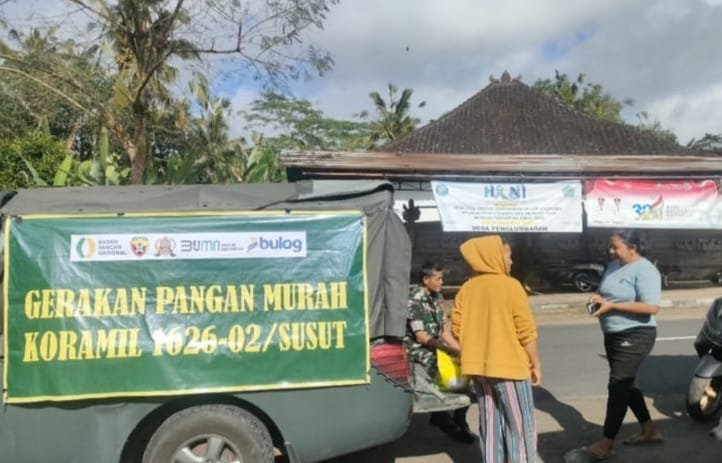 Bangli – Dalam upaya membantu masyarakat memperoleh beras dengan harga terjangkau, Koramil 1626-02/Susut bekerjasama dengan Perum Bulog menggelar kegiatan Gerakan Pangan Murah (GPM) Beras SPHP di halaman Makoramil 1626-02/Susut, Senin (15/09/2025).