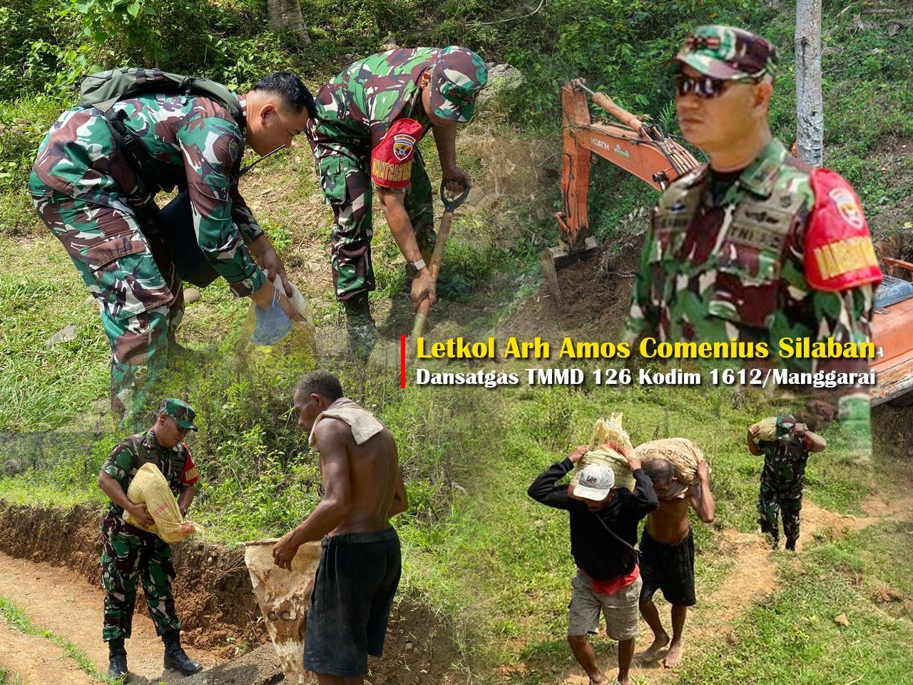 Dialah Letkol Arh Amos Comenius Silaban, Komandan Kodim 1612/Manggarai. Ia hadir tanpa iring-iringan kendaraan dinas, tanpa kemegahan upacara atau sorotan kamera. Dengan seragam lapangan yang sederhana dan sepatu penuh debu, ia berjalan menapaki jalan menanjak, tanah licin, dan bebatuan keras yang menjadi saksi perjuangan rakyat kecil di kaki bukit Manggarai.