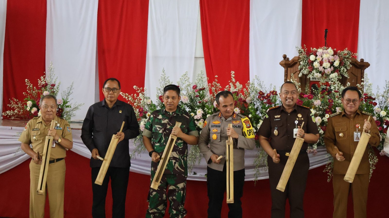 Turut hadir dalam kegiatan tersebut antara lain, Dr. Noudy R.P. Tendean, S.PI, M.Si ( Penjabat Bupati Minahasa ), Beny Hermanto, SH.,MH ( Kajari Minahasa ), Drs Robby Longkuto MM ( Ketua DPRD Kabupaten Minahasa ), Letkol Inf Mutakbir Komandan Kodim ( Dandim 1302/Minahasa ), AKBP S. Sophian, S.I.K., M.H. ( Kapolres Minahasa ),