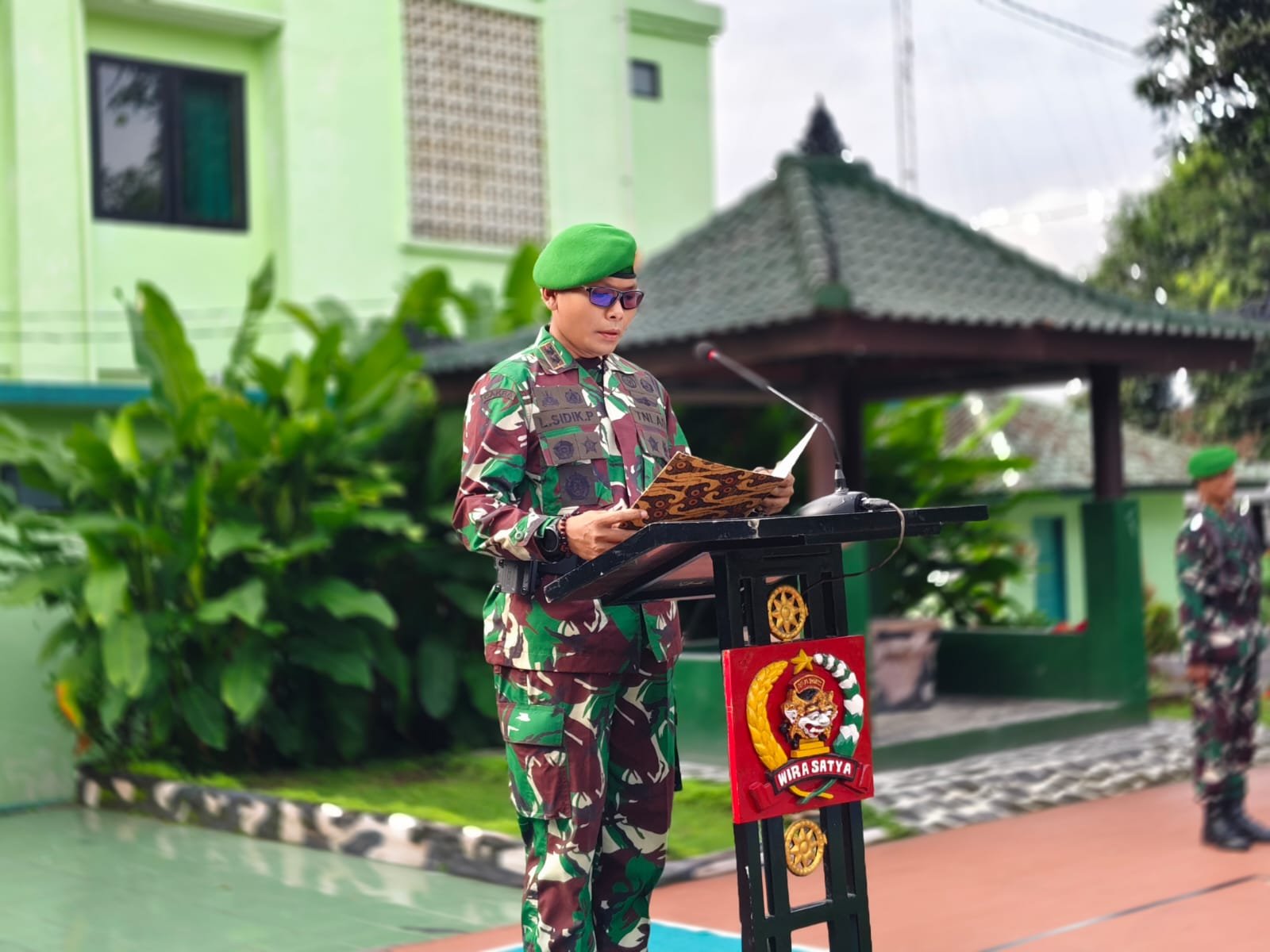 Upacara yang berlangsung secara khidmat ini diawali dengan pengibaran bendera Merah Putih, diikuti dengan pembacaan Teks Pancasila oleh Inspektur Upacara, serta pengucapan Sapta Marga dan Sumpah Prajurit. Letkol Pramono menekankan pentingnya upacara ini sebagai media untuk menumbuhkan jiwa patriotisme dan nasionalisme di kalangan prajurit.