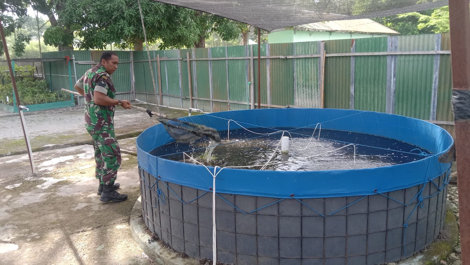 Sidrap – Anggota Makodim 1420/Sidrap bersama jajaran Koramil, secara aktif melaksanakan kegiatan perawatan dan pemeliharaan tanaman, serta budi daya ikan nila. Kegiatan ini merupakan bagian dari program ketahanan pangan yang digalakkan dengan memanfaatkan lahan kosong di lingkungan Markas Kodim maupun Koramil. Jumat (21/11/2025).