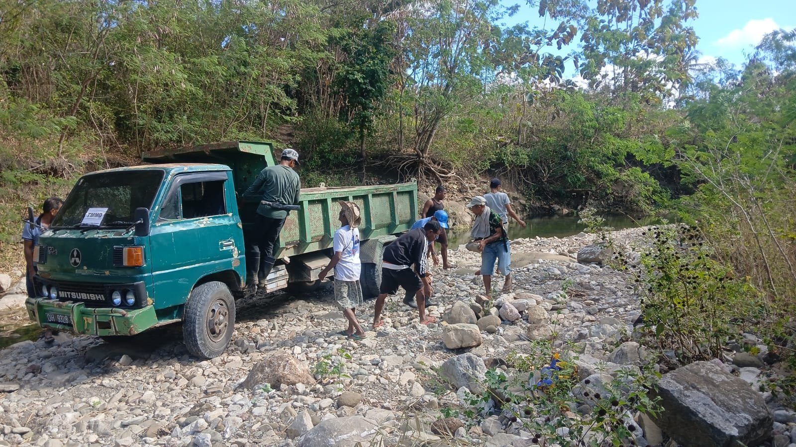 Masyarakat Gotong Royong Suplai Bahan Material Batu Kali Ke Lokasi TMMD 125 Kodim Belu
