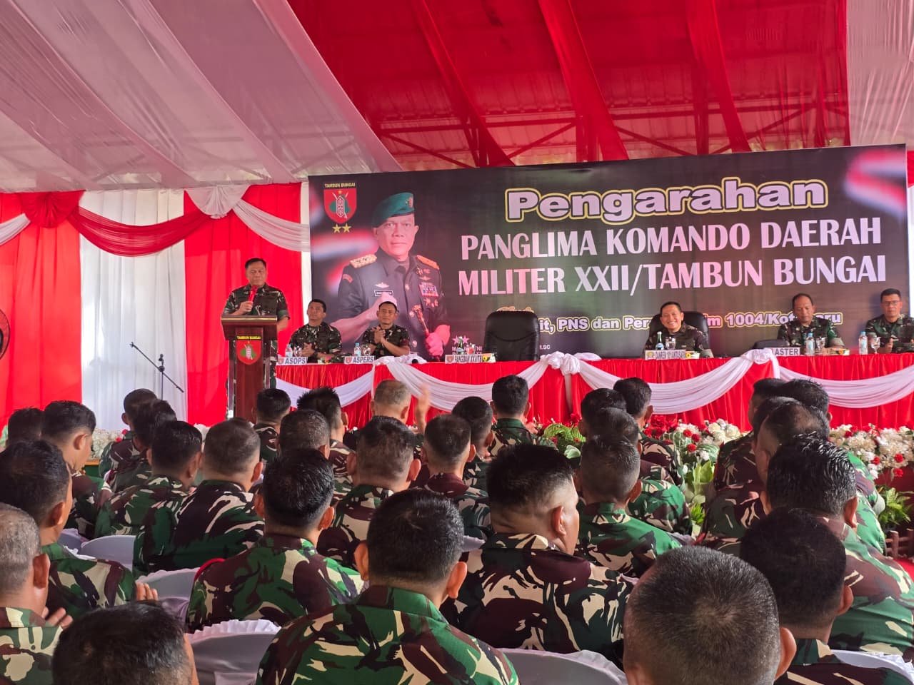 KOTABARU – Panglima Komando Daerah Militer (PANGDAM) XXII/Tambun Bungai, Mayjen TNI Zainul Arifin, S. A. P., M. SC, melaksanakan kunjungan kerja (Kunker) di Markas Komando Distrik Militer (Makodim) 1004/Kotabaru pada hari Rabu, 5 November 2025. Kunjungan ini bertujuan untuk melakukan pembinaan satuan, mengecek kesiapan prajurit, dan memberikan arahan strategis, khususnya terkait dukungan terhadap program-program nasional.