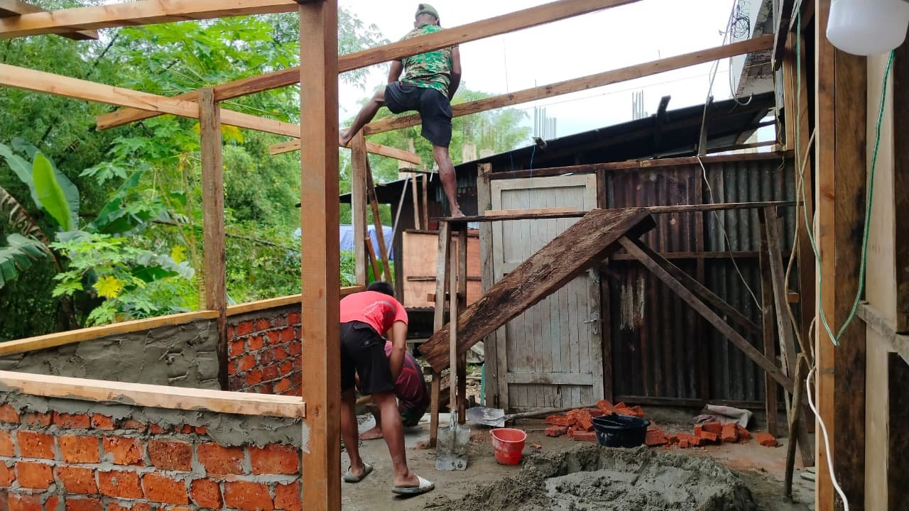 Pada Rabu (29/10/2025), para prajurit Satgas TMMD bersama warga tampak kompak menyelesaikan proses akhir pembangunan, meliputi pemasangan pintu, atap, hingga pengecatan dinding. Semua dilakukan dengan teliti agar fasilitas tersebut segera bisa dimanfaatkan oleh masyarakat.