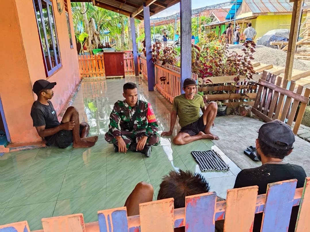 Halmahera Tengah-Babinsa Serda Nasri bersama Bapak Yohanes, Bapak Fanani, Bapak Tinus dan Bapak Epi melaksanakan giat Komsos, berupa himbauan untuk tidak membuang sampah dipinggir Pantai, bertempat di Desa Goeng Kecamatan Weda Kabupaten Halmahera Tengah.Selasa, (07/10/2025)