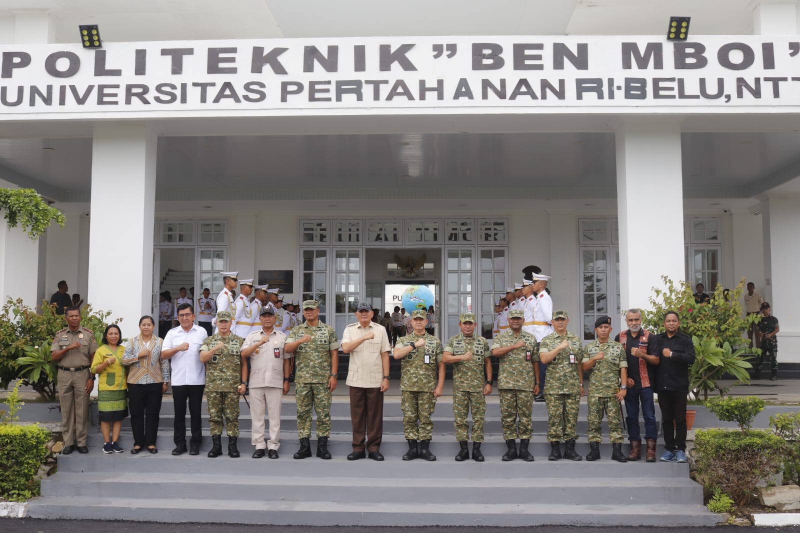 Kunjungan ini bertujuan untuk melaksanakan tinjauan ke Fakultas Vokasi Logistik Militer (FVLM) yang berada di Universitas Pertahanan Republik Indonesia Politeknik Mben Boy. Menhan dan rombongan disambut secara khidmat, ditandai dengan pengalungan kain tais sebagai simbol penghormatan terhadap budaya lokal.