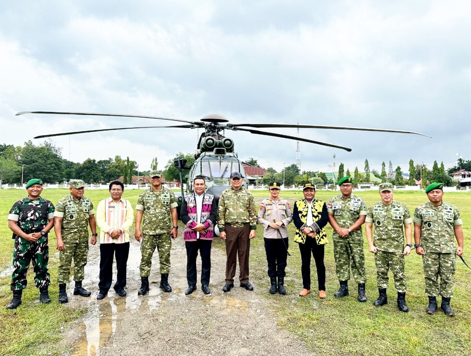 Penyambutan ini tidak hanya seremonial, tetapi juga menandakan kesiapan daerah dalam mendukung agenda nasional, terutama dalam hal pertahanan di wilayah perbatasan. Rombongan Menhan tiba dengan helikopter militer TNI Angkatan Udara tipe EC-725/H225M, mendarat dengan mengikuti prosedur pengamanan yang ketat.