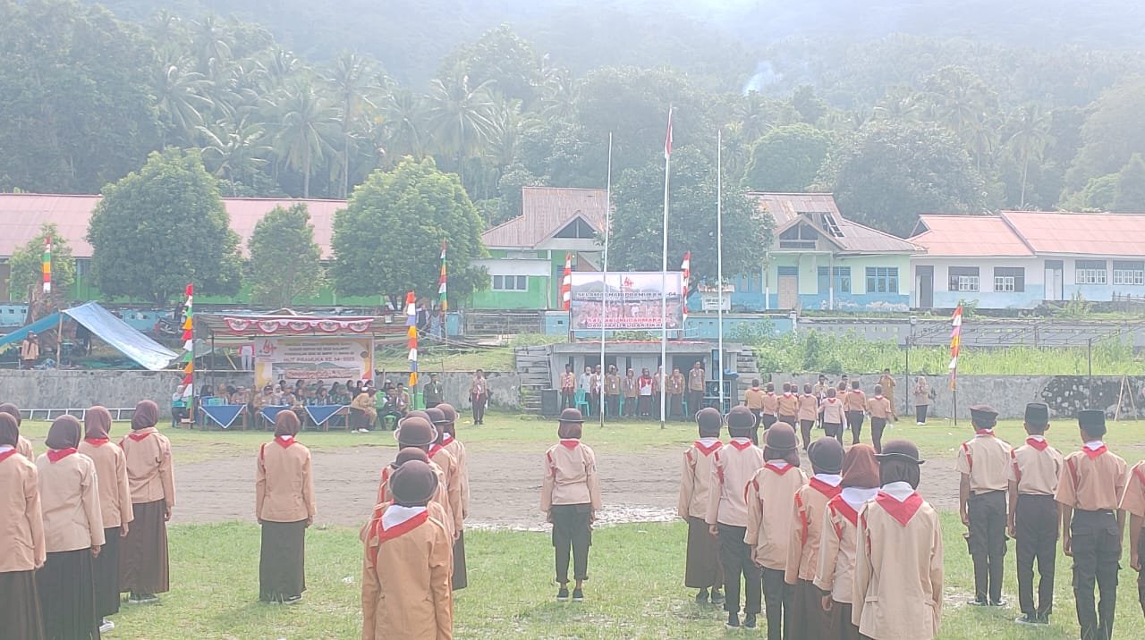 Menumbuhkan Rasa Cinta Tanah Air, Satgas TMMD dan Pemdes Malapat Gelar Upacara HUT Pramuka