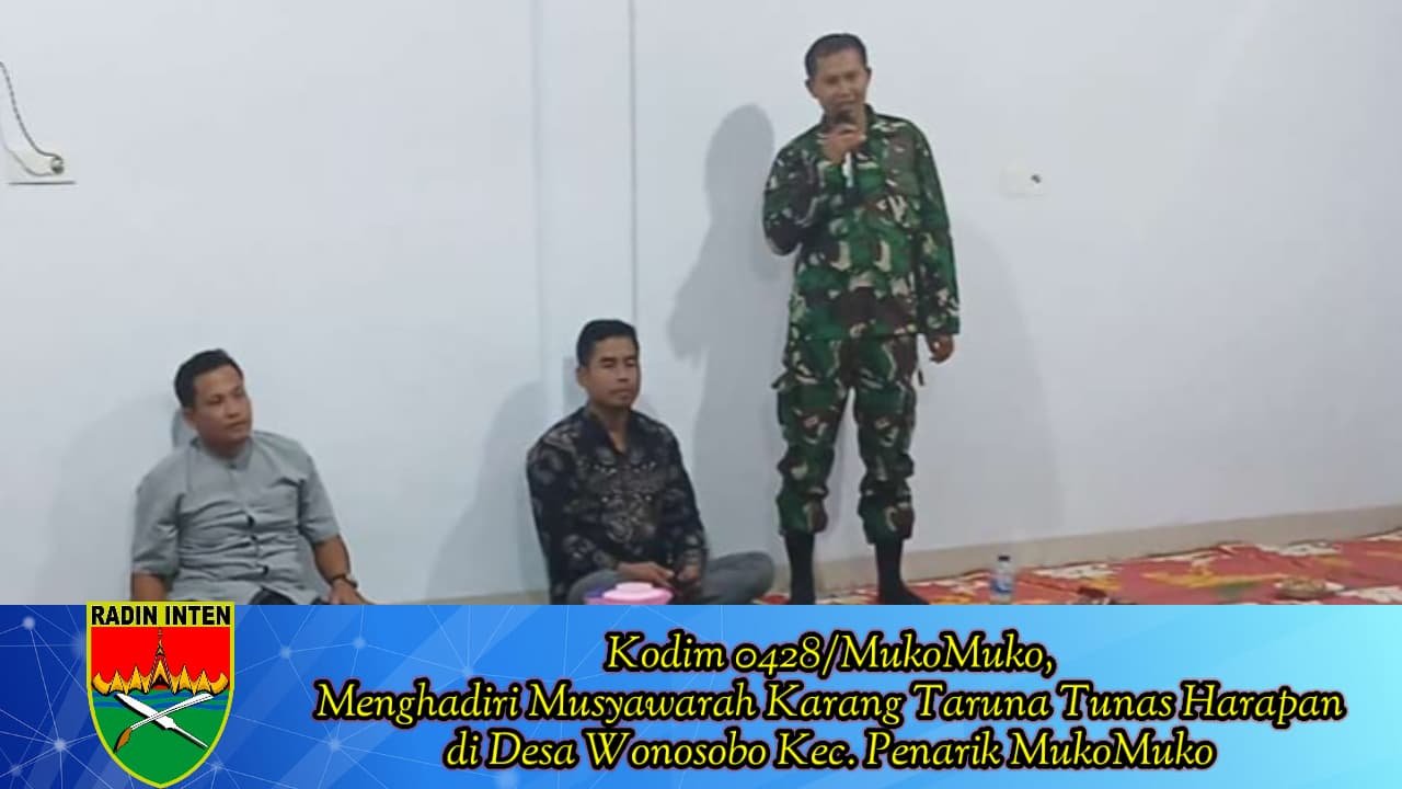 Kodim 0428/MukoMuko mengadakan kehadiran penting dalam Musyawarah Karang Taruna Tunas Harapan yang berlangsung di Desa Wonosobo, Kecamatan Penarik, Kabupaten MukoMuko pada Rabu, 30 Desember 2025. Acara ini dipimpin oleh Kepala Desa Wonosobo dan dihadiri oleh berbagai elemen, termasuk Babinsa, Badan Permusyawaratan Desa (BPD), serta seluruh anggota Karang Taruna.